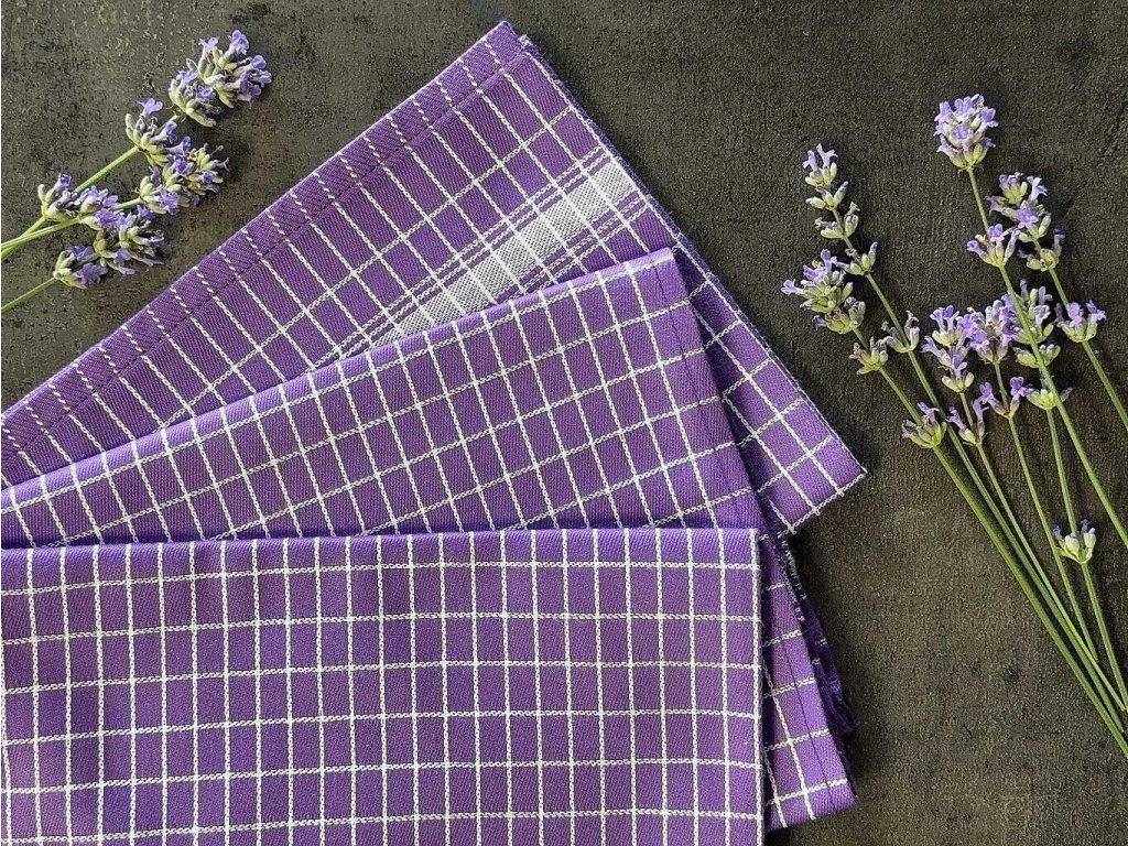 Utěrka Extra savá 50x70 cm Drobná kostka fialovo/bílá 3 ks