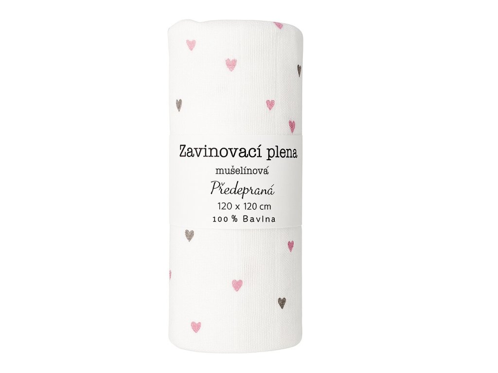 Zavinovací plena 120x120 cm Fialová srdíčka (balení 1 ks)